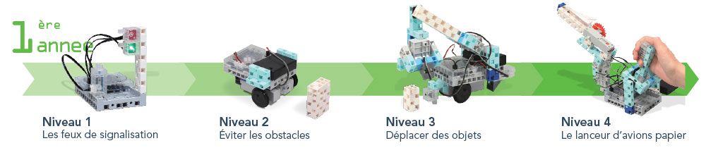 L’école Algora propose un cursus de cours de robotique sur 3 ans pour acquérir les bases et se perfectionner dans l’art de la programmation de robots. Pour les accompagner dans chaque cours, les élèves disposeront d’une boîte Algora qui comprend toutes les pièces nécessaires à l’élaboration des robots des 2 premières années.